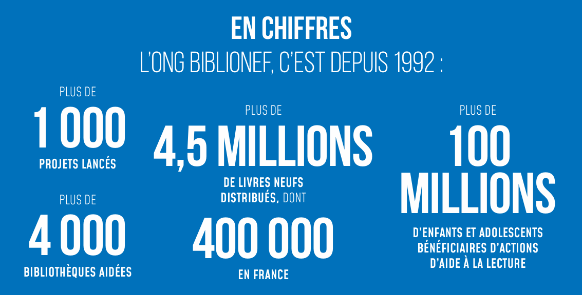 Aujourd’hui, l’association intervient sur les cinq continents et dans 115 pays. Elle opère du Maroc au Kurdistan d’Irak, de la Tunisie à l’Afrique du Sud, de l’Amérique centrale au Cameroun en passant par Madagascar ou encore l’Arménie. Plus près de nous, Biblionef facilite l’accès aux livres à de jeunes populations en difficulté de l’Hexagone et de territoires d’outre-mer dans des régions défavorisées ou zones blanches rurales (68 départements à ce jour). En dix ans, elle aura ainsi contribué à compléter, équiper, créer et animer des lieux favorisant la lecture, en lien avec des acteurs de la société civile et des collectivités territoriales.